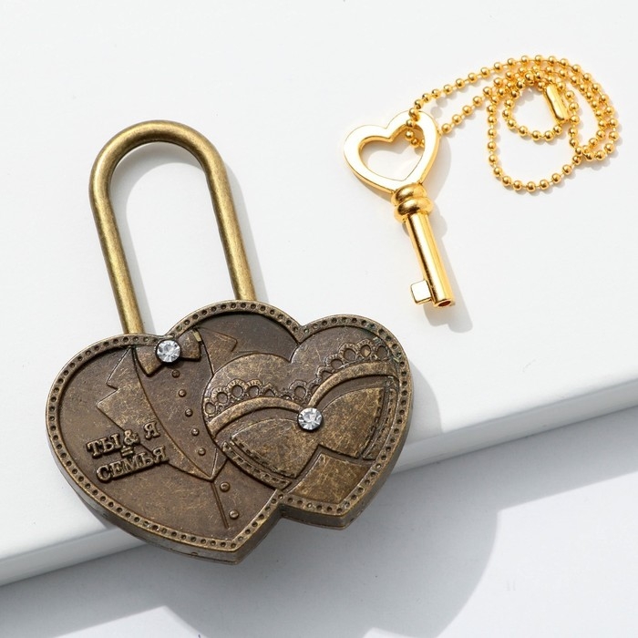 Замок свадебный с ключом « Ты и Я = СЕМЬЯ».