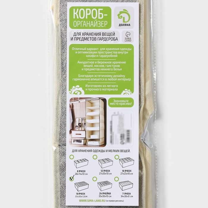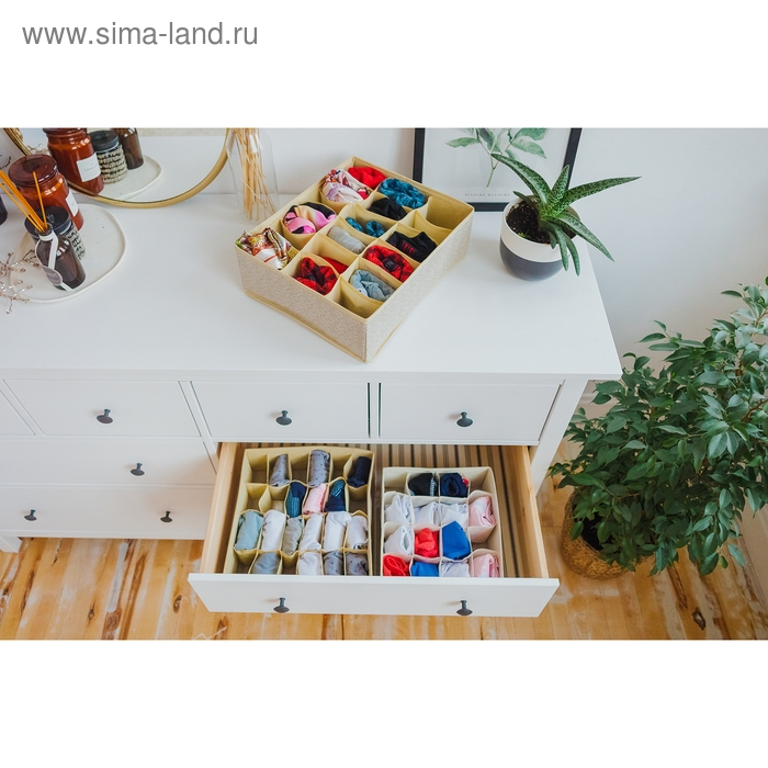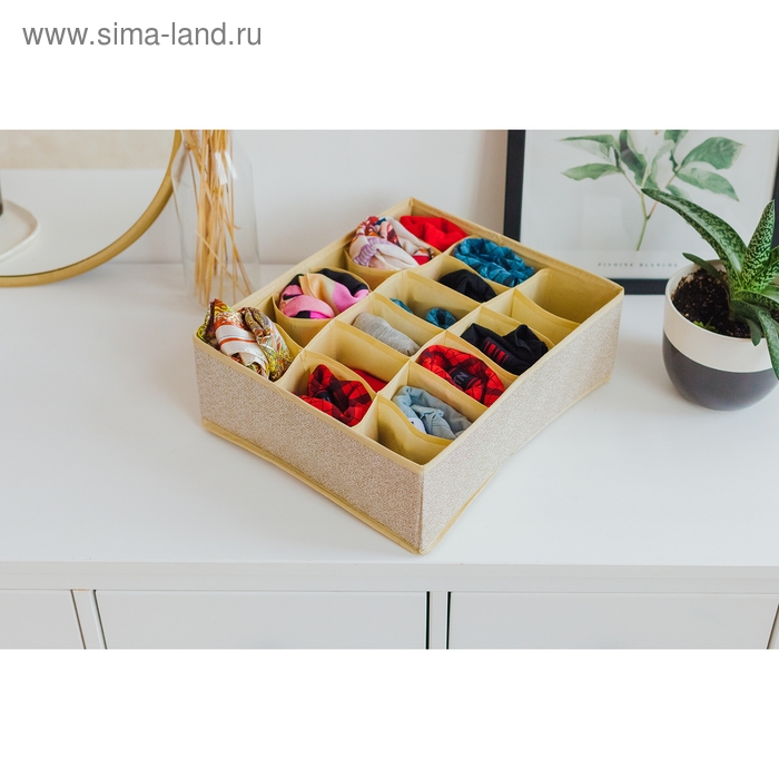 Органайзер для хранения белья Доляна «Европа», 18 ячеек, 35×30×12 см, цвет бежевый