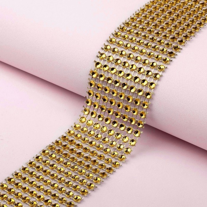 Лента с имитацией страз, 4 см, 9 ± 1 м, цвет золотой