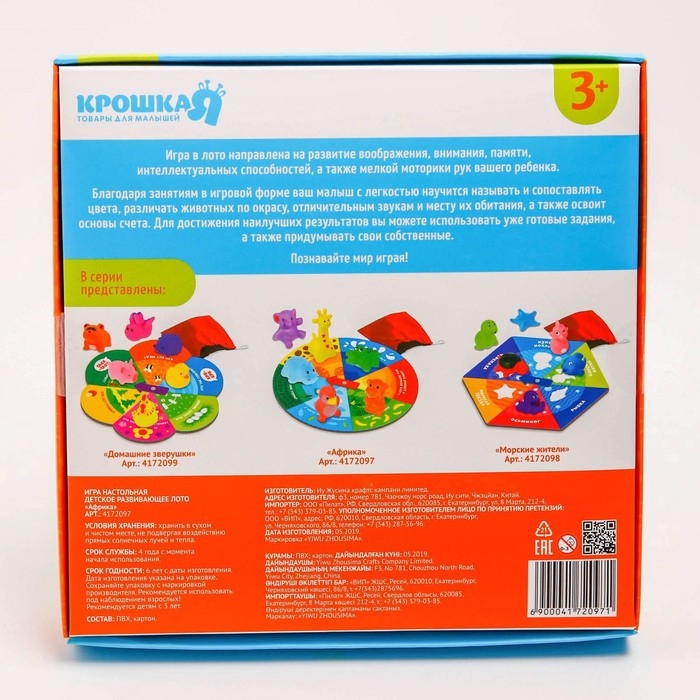 Детское развивающее лото «Африка, Морские жители», изучение животных, виды МИКС, Крошка Я