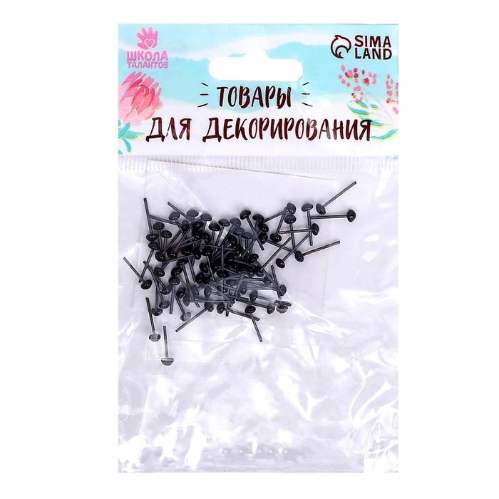 Глаза стеклянные на металлической ножке, набор 74 шт, d= 0,3 см, цвет чёрный