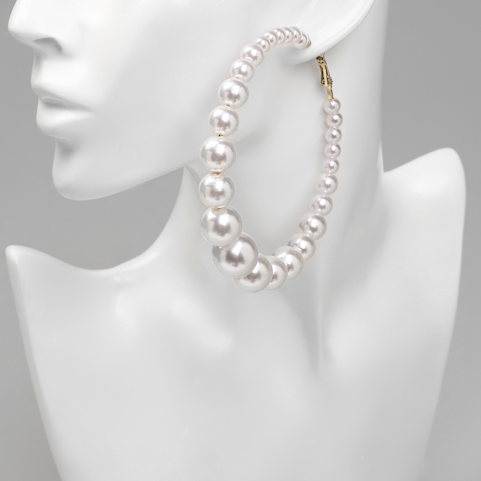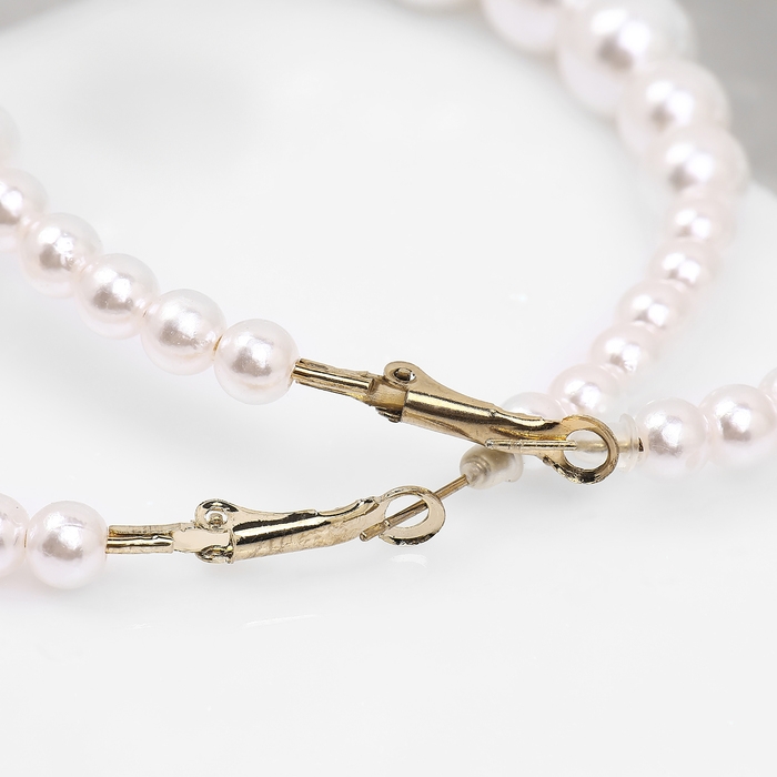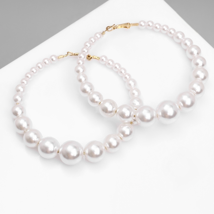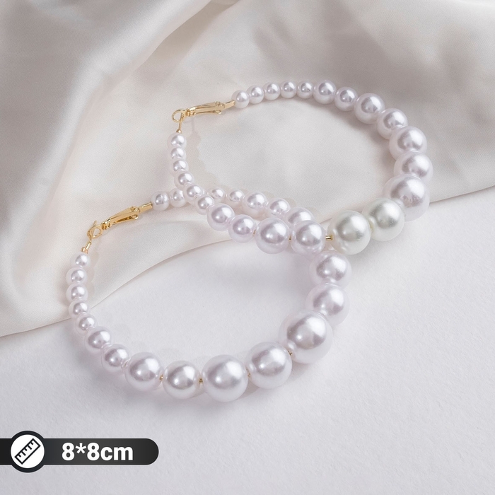 Серьги-кольца «Нежность жемчуга» кольца крупные, цвет белый в золоте, d=8 см