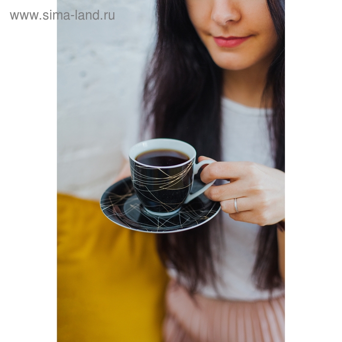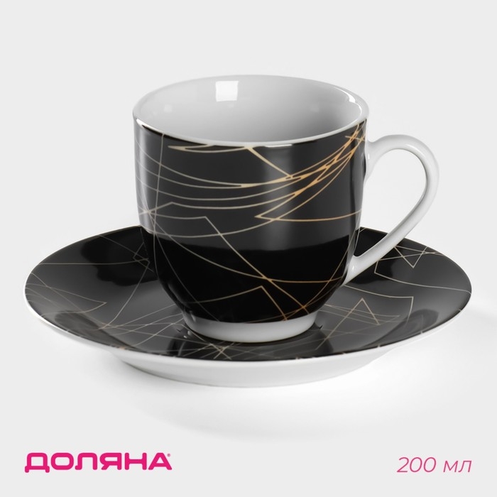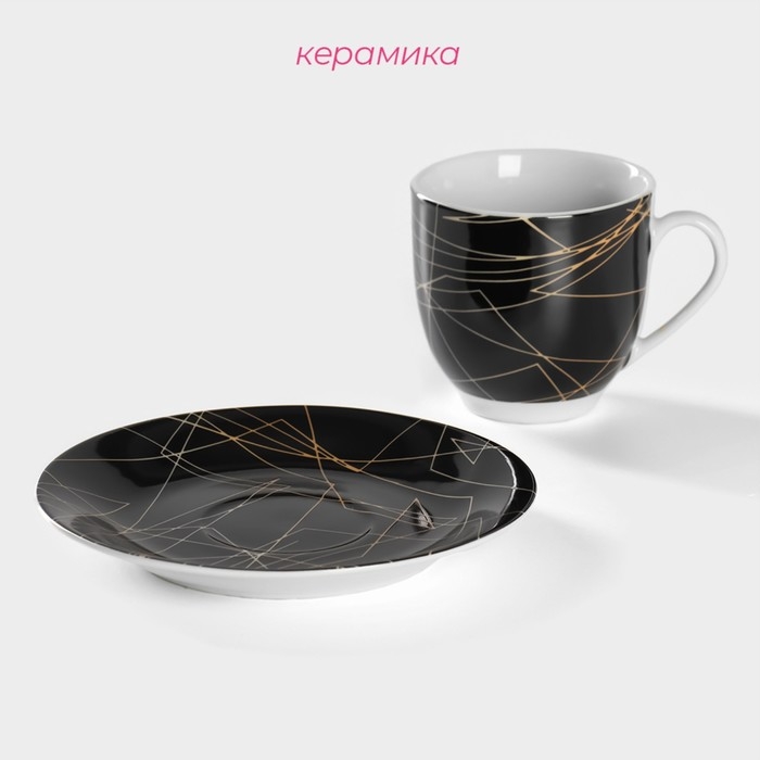 Чайная пара керамическая Доляна «Кассиопея», 2 предмета: чашка 200 мл, блюдце d=14,5 см