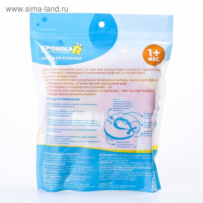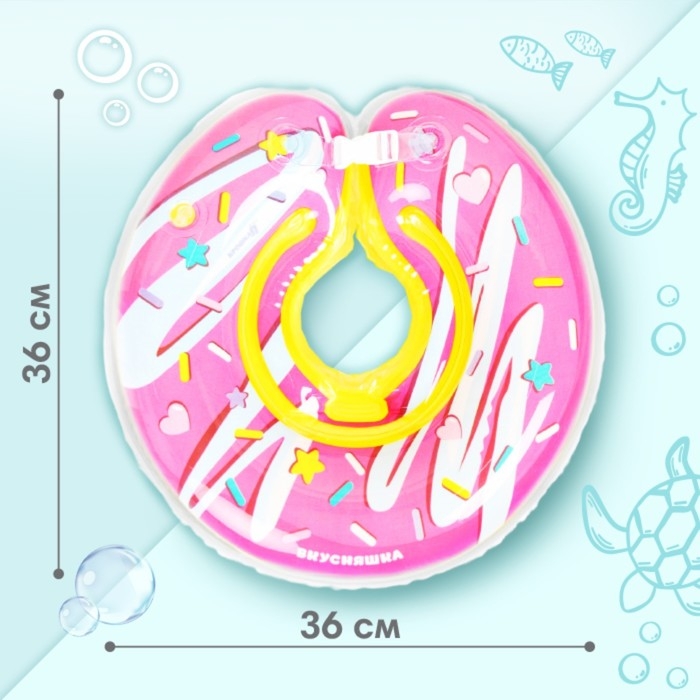 Круг для плавания новорожденных на шею «Пончик», надувной, с ручками, цвет розовый, Крошка Я