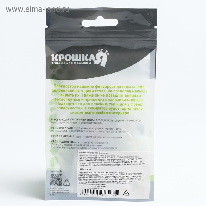 Набор блокираторов для дверей и ящиков, универсальные, 17 см, 2 шт., цвет белый/прозр, Крошка Я