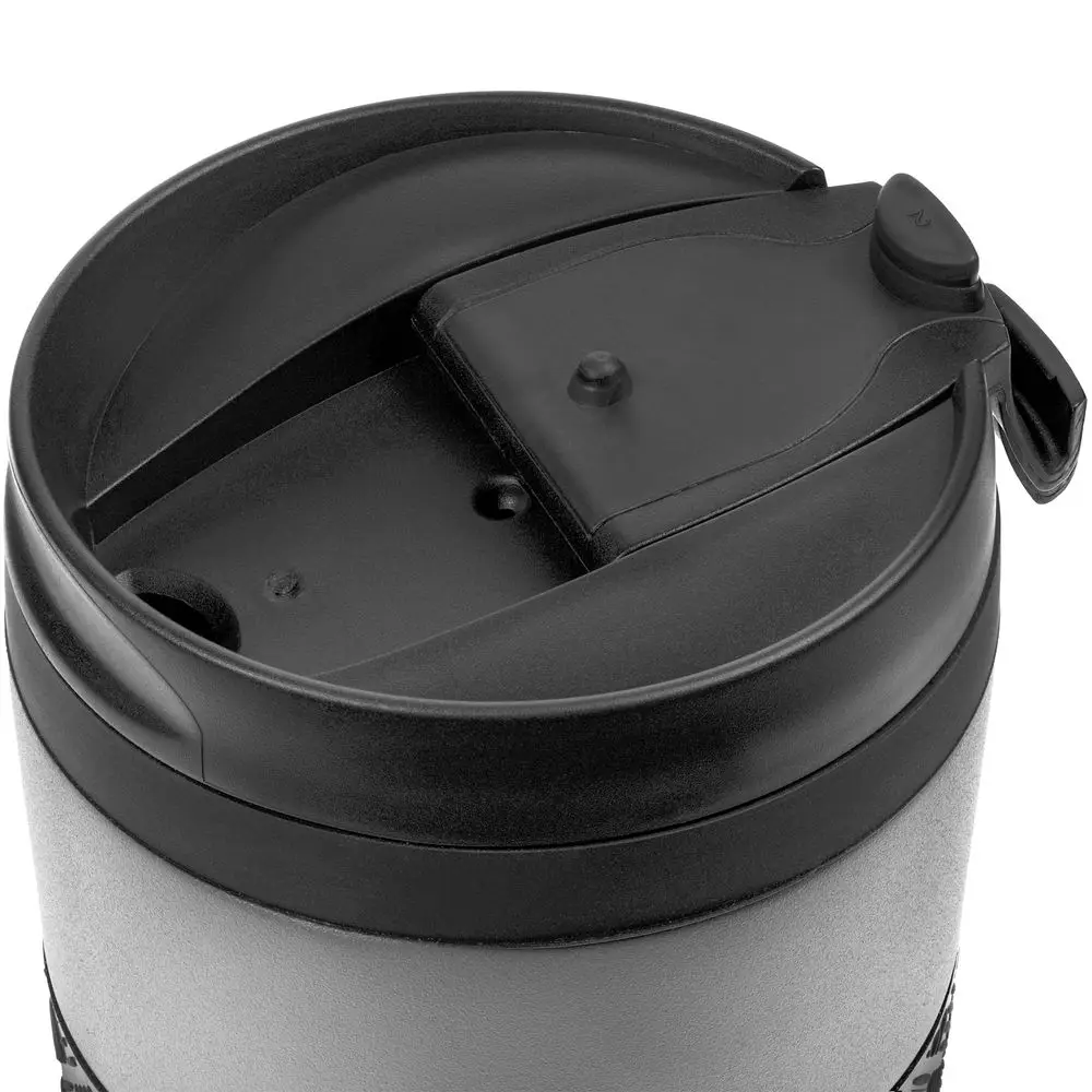 Двухслойная вакуумная конструкция из нержавеющей стали. Герметичная завинчивающаяся крышка с откидным клапаном. Стакан подходит для большинства автомобильных подстаканников.