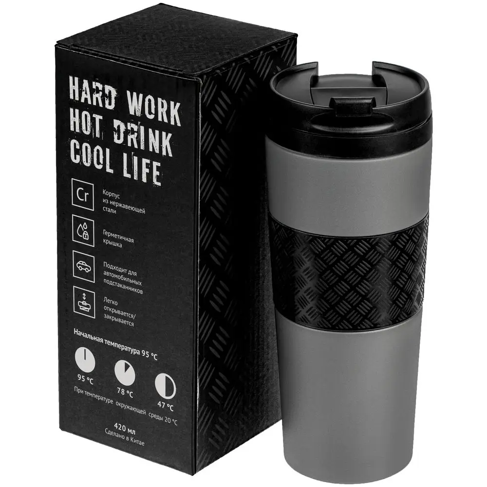 Термостакан Hard Work, вакуумный, темно-серый (графит)
