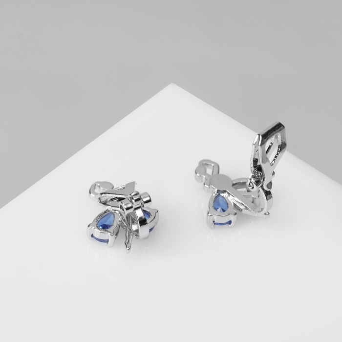 Клипсы «Грейс» диагональ бусин, цвет белый в чернёном серебре