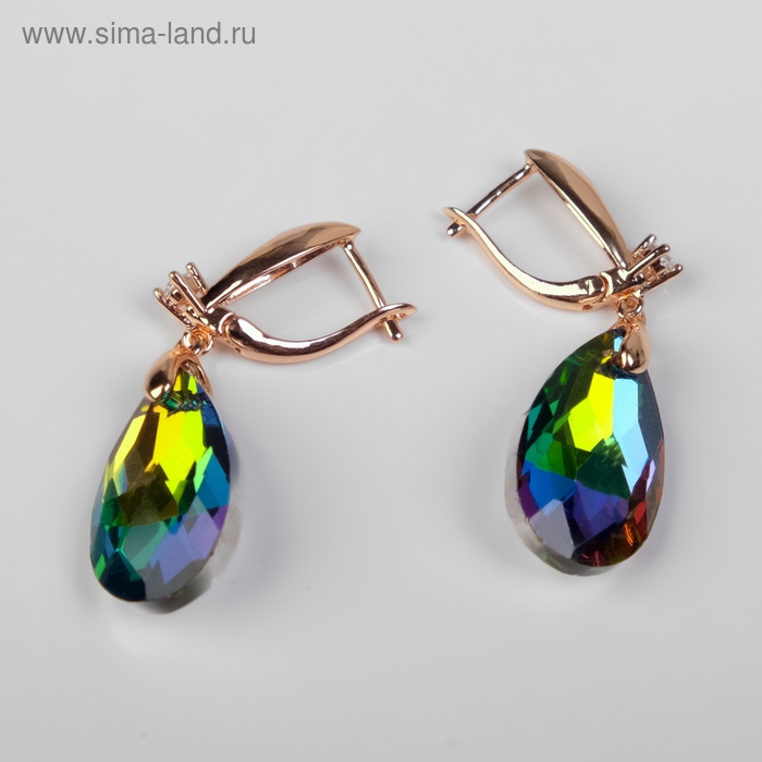 Серьги со стразами «Иллюзион» капля на овале, цвет бело-бензиновый в розовом золоте