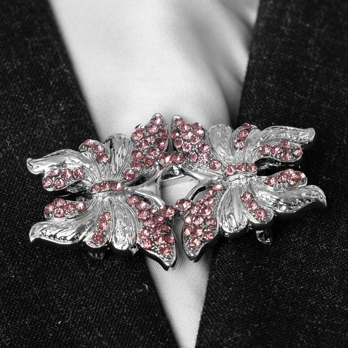 Зажим для кардигана «Бабочки», цвет розовый в серебре