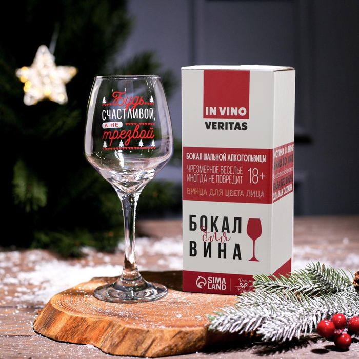Бокал для вина «Будь счастливой!» 350 мл., деколь