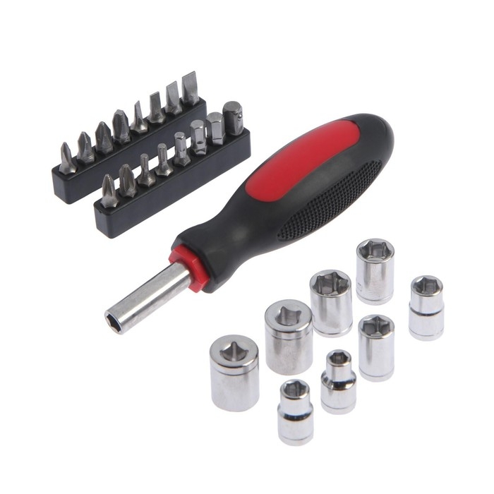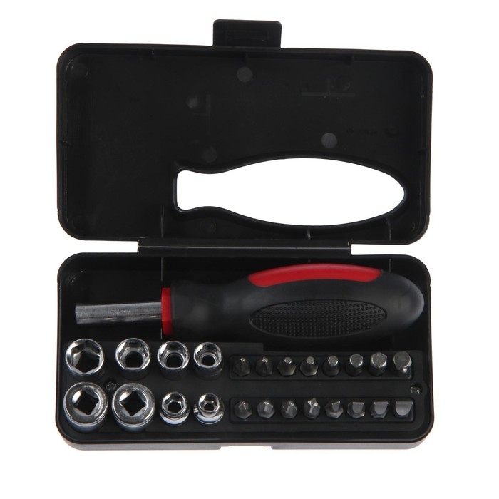 Отвертка с набором бит и торцевых головок ТУНДРА, пластиковый кейс, 25 предметов