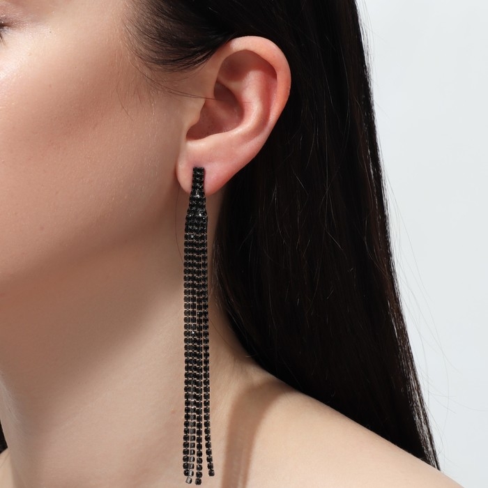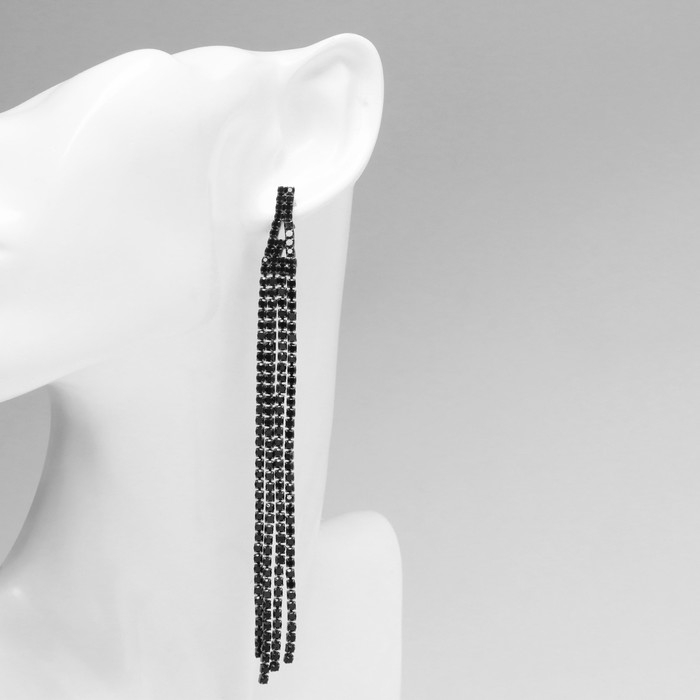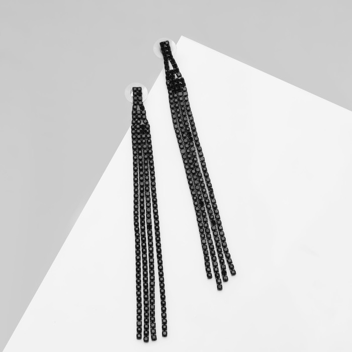 Серьги висячие со стразами «Лёд» 4 нити, цвет чёрный, 11,5 см