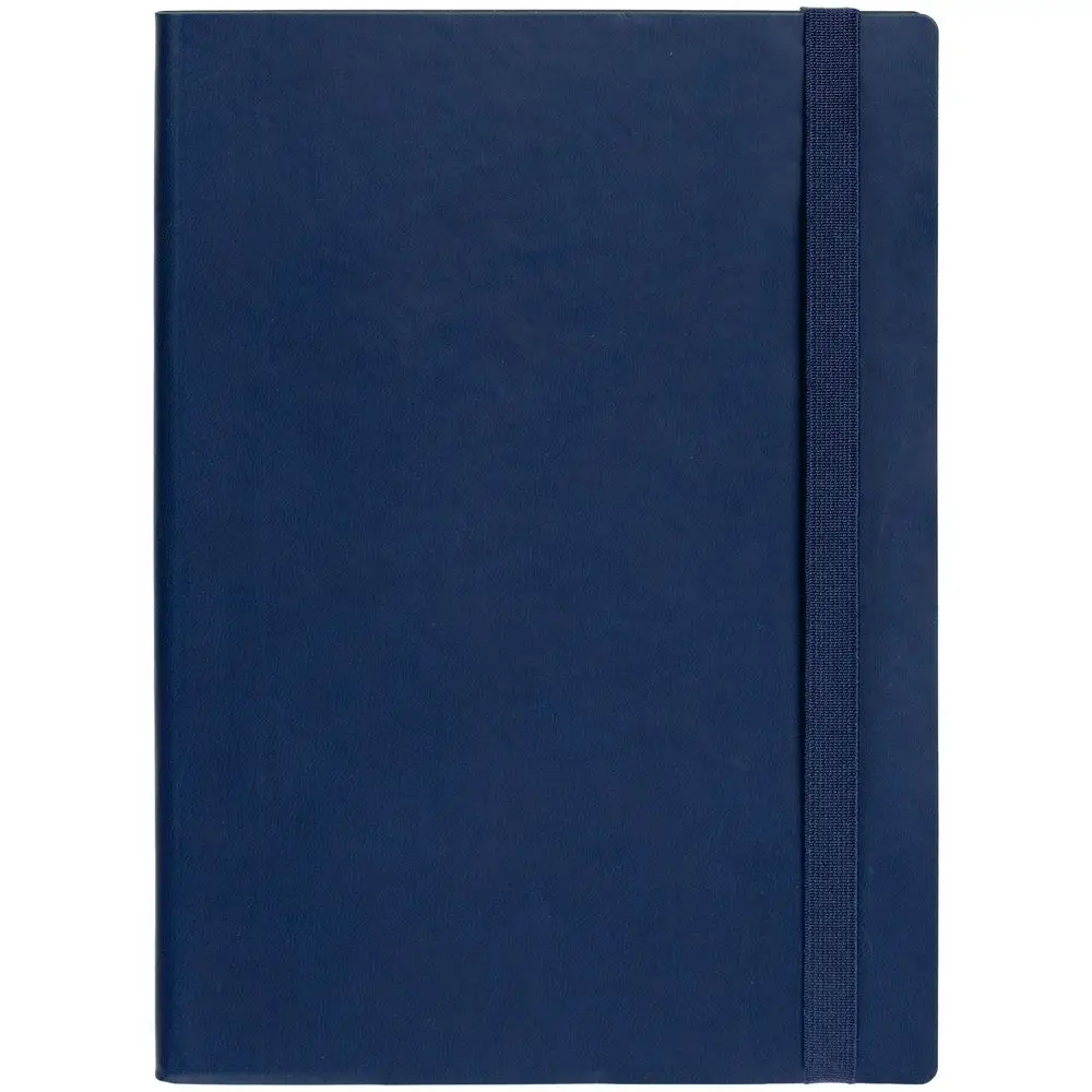 Ежедневник с гибкой обложкой, выполнен из материала Latte, темно-синий НН, дополнен резинкой шириной 1 см, капталом и ляссе темно-синего цвета.
