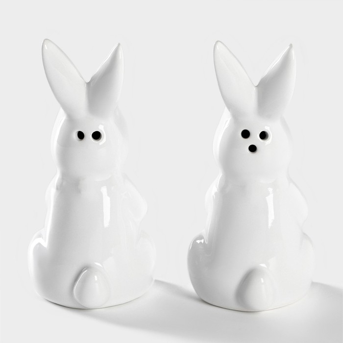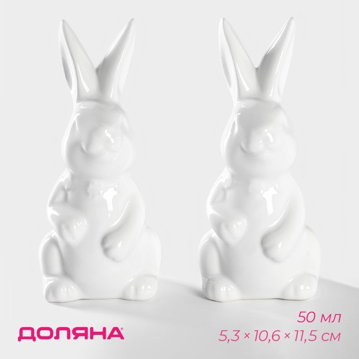 Набор для специй Доляна «Зайка», 2 предмета: солонка 50 мл, перечница 50 мл, цвет белый