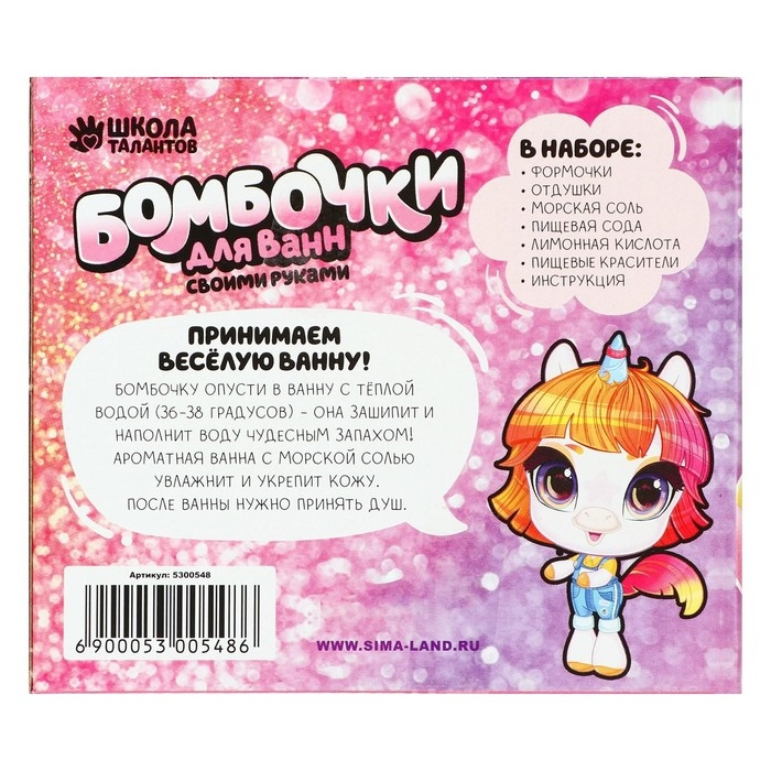 В наборе вы найдёте все необходимые составляющие, а также подробную инструкцию по изготовлению бомбочек.