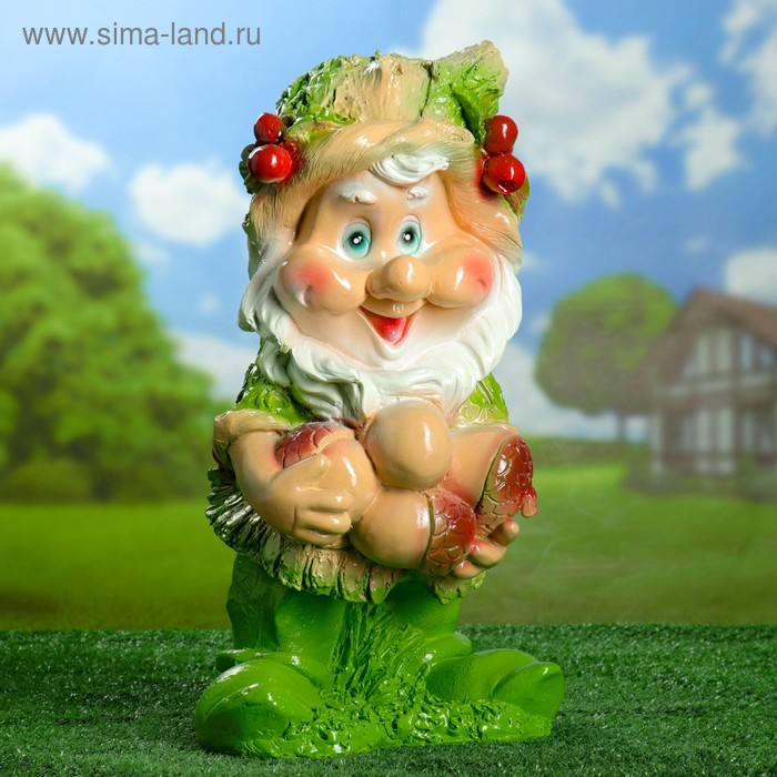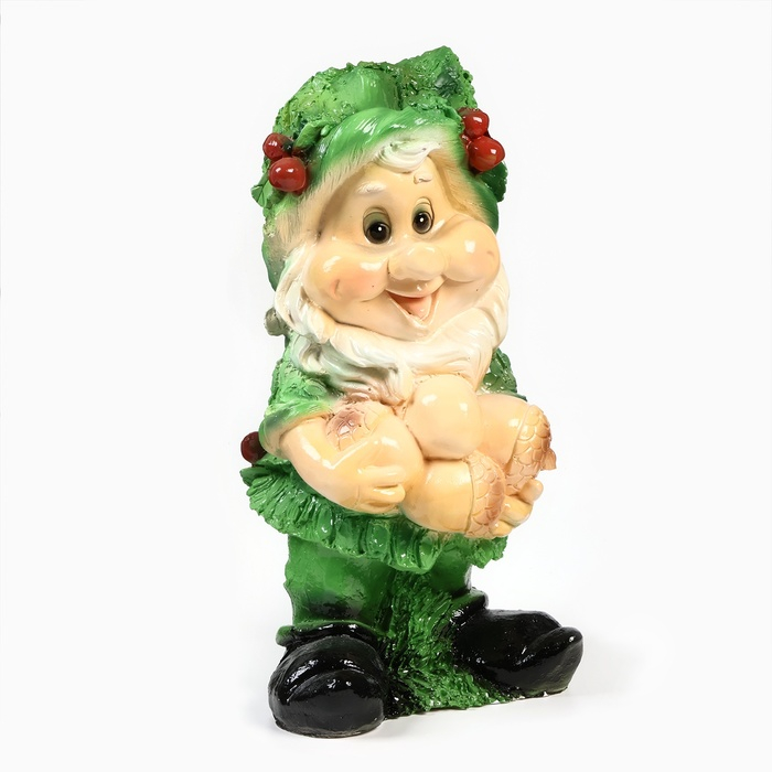 Садовая фигура "Гном с желудями" зеленый 45х26см