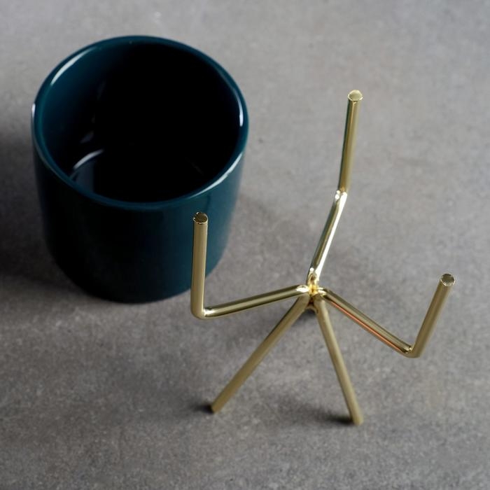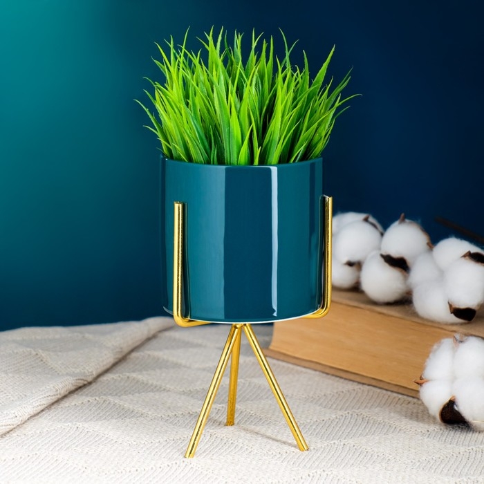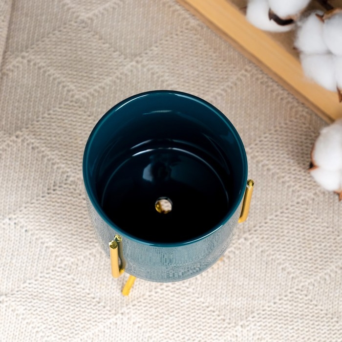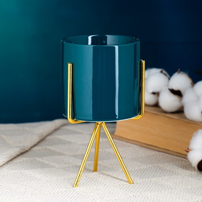 Кашпо "Цилиндр" зеленое, на золотой подставке, 15х8х8см