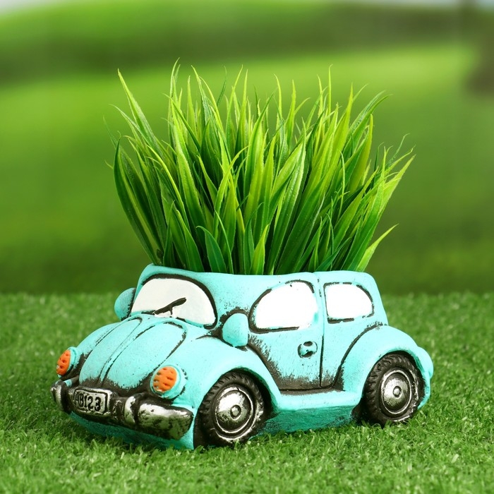 Горшок "Машинка" зеленый, 14,5х9х6см