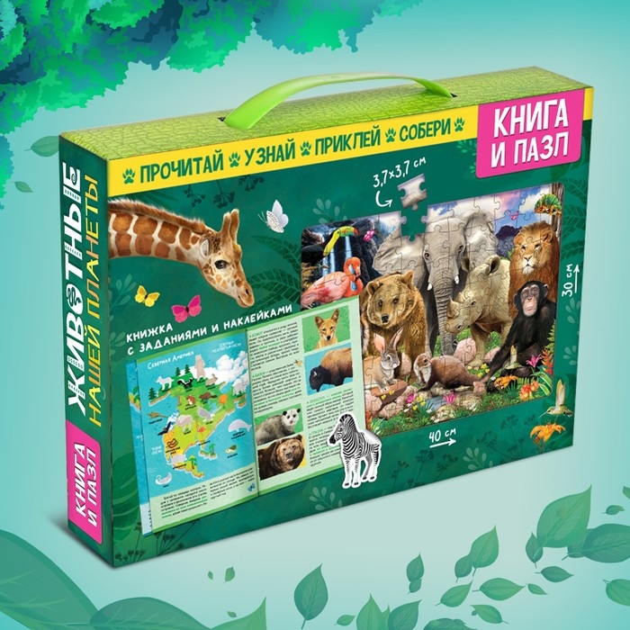 Обучающий набор «Животные нашей планеты», мини-энциклопедия и пазл, 88 элементов