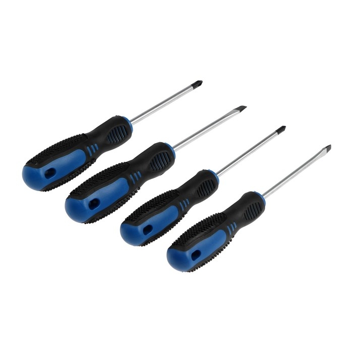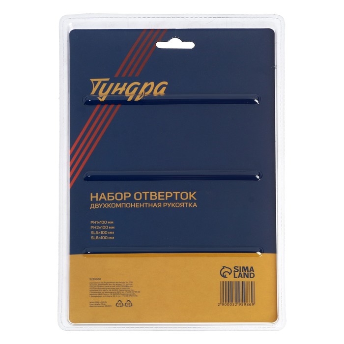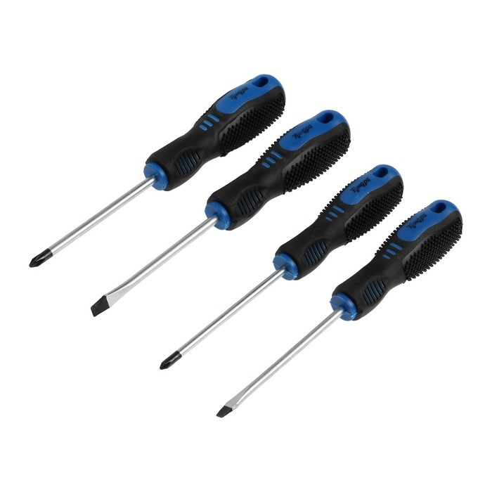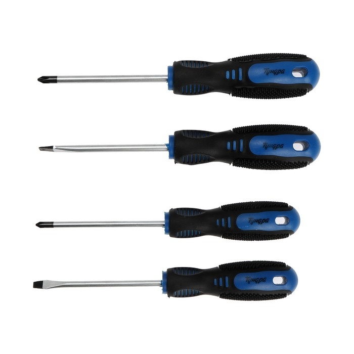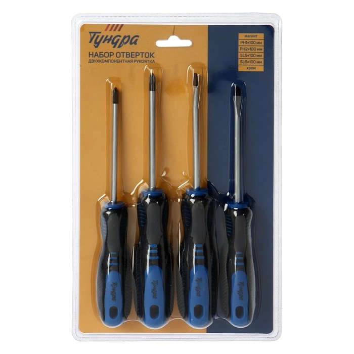Набор отверток ТУНДРА, CrV, хром, магнит, 2К рукоятки, PH1,PH2,SL5,SL6 х 100 мм, 4 шт.