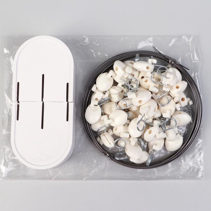 Карниз-струна 10 м, с пластмассовыми зажимами, 60 шт, цвет белый