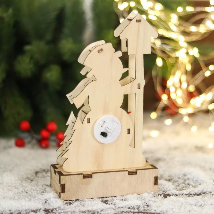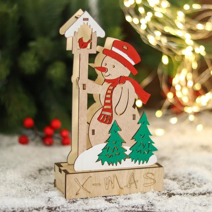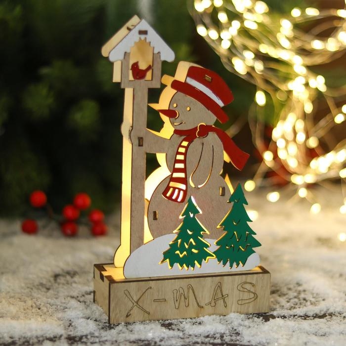 Фигурка новогодняя свет "Снеговик в лесу у скворечника" 12х21 см