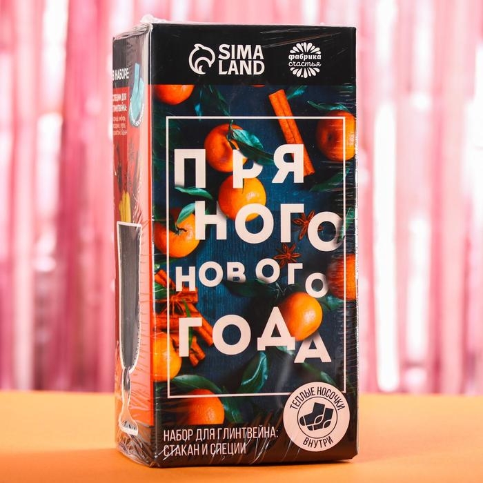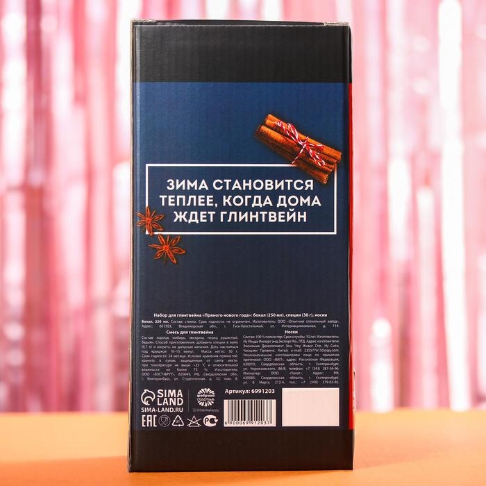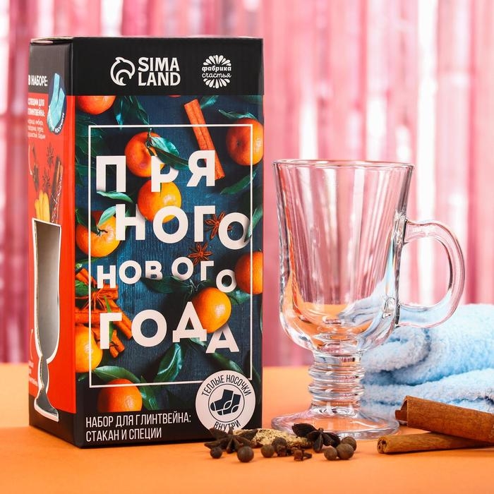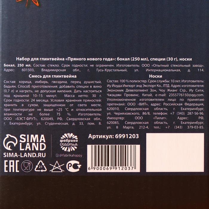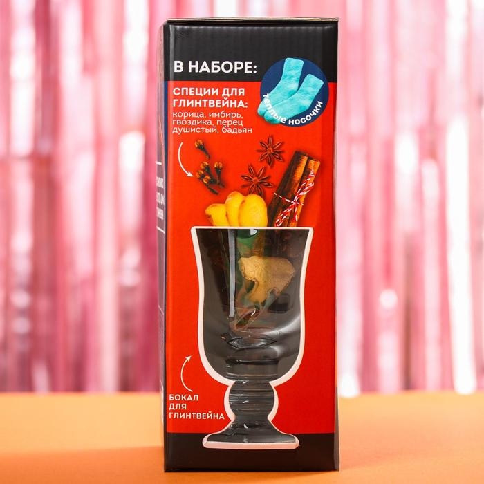 Набор для глинтвейна «Пряного нового года»: бокал 250 мл., специи 30 г., носки