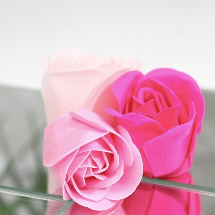 Благодаря точному повторению мелких деталей мыльные розы схожи с настоящими цветами. Композиция наполняет помещение тонким и ненавязчивым цветочным ароматом.