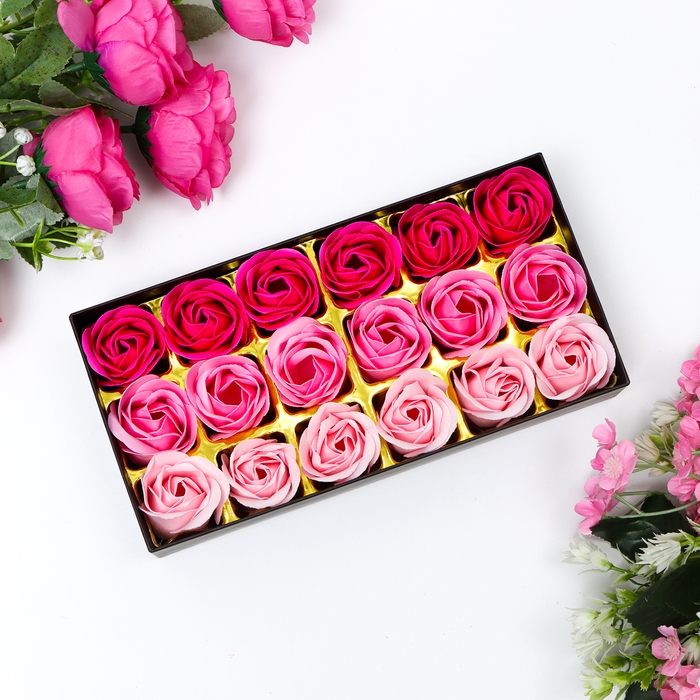 Мыльные розочки, цветные оттенки, набор 18 шт.