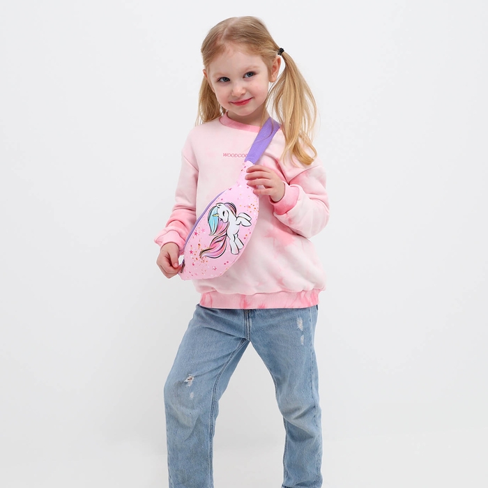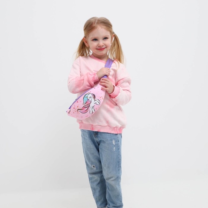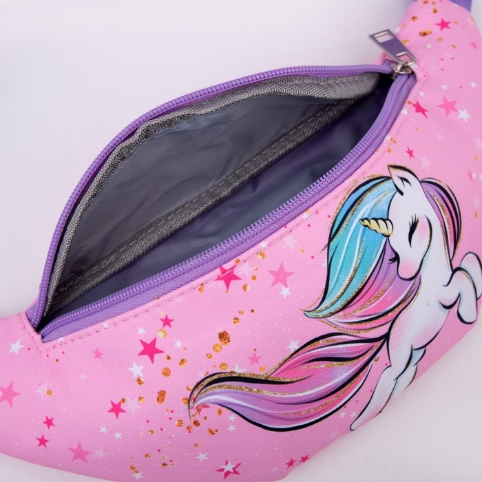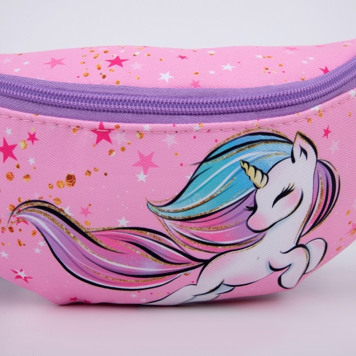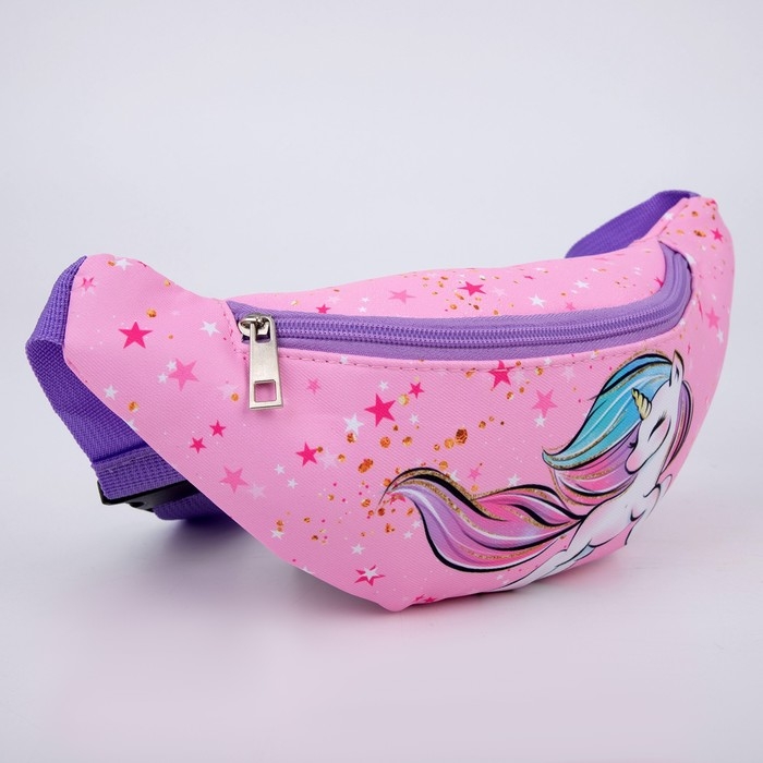 Сумка детская для девочки поясная "Единорог",на молнии, наружный карман, цвет розовый