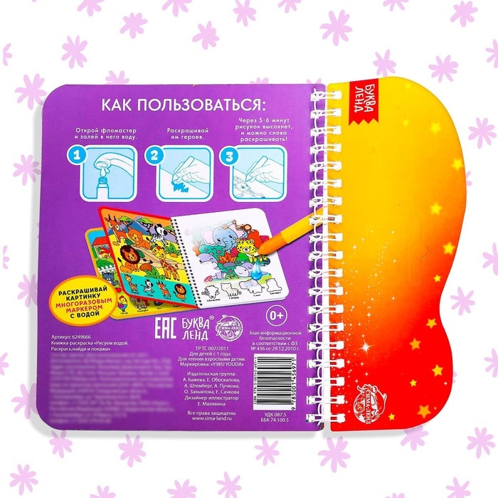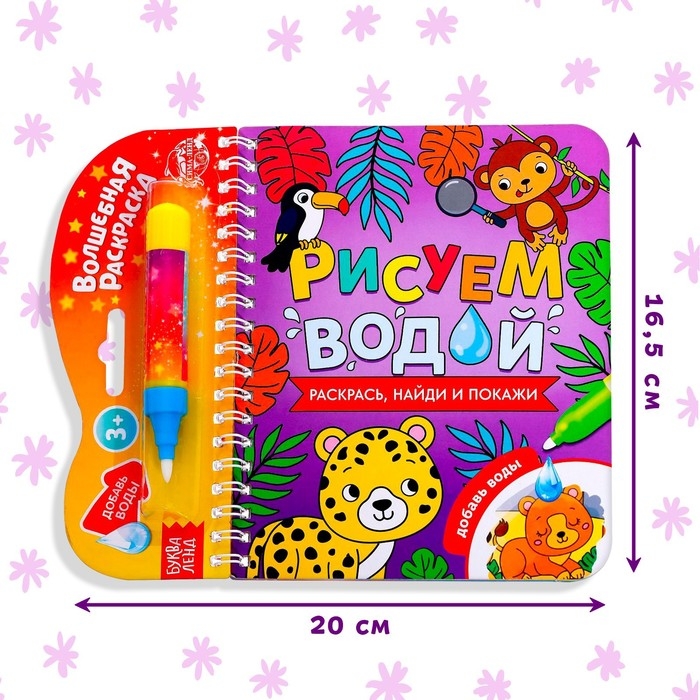 Книжка-раскраска многоразовая «Рисуем водой. Раскрась, найди и покажи», 10 стр.