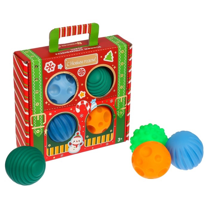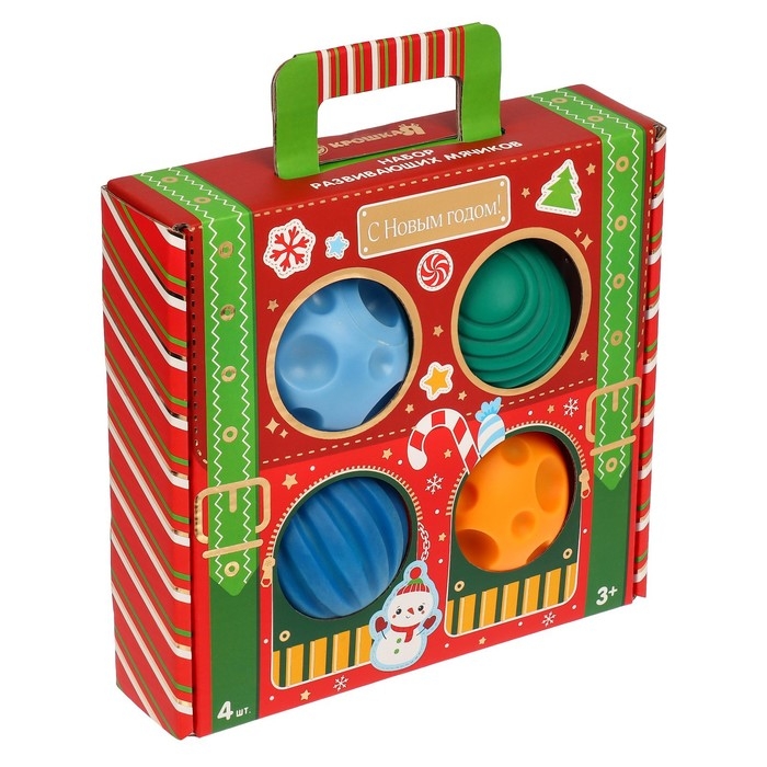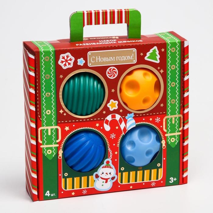 Подарочный набор развивающих тактильных мячиков «Волшебный чемоданчик», 4 шт., новогодняя подарочная упаковка, Крошка Я