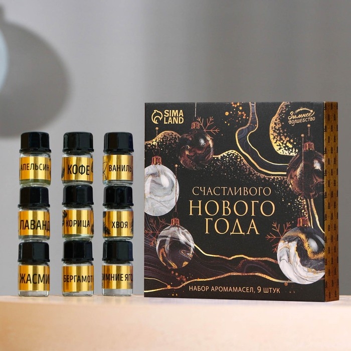 Новогодние аромамасла «Новый год: Счастливого нового года», Набор новогодних 9 шт, 3 мл