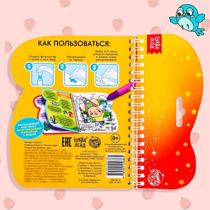 Книжка-раскраска многоразовая «Рисуем водой. Загадки про времена года», 10 стр.