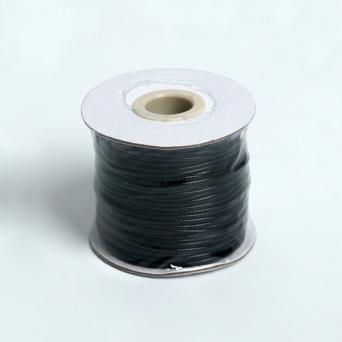 Шнур вощёный из полиэстера d=1,5 мм, L=50 м, цвет чёрный
