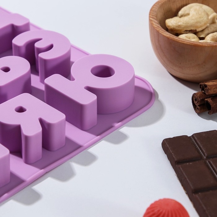Форма для кондитерских украшений Доляна «Буквы. Алфавит русский», силикон, 24,8×12×1,5 см, 33 ячейки, цвет сиреневый
