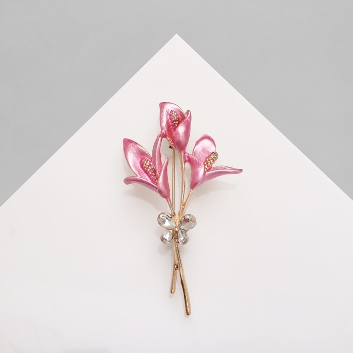 Брошь «Цветы» трио лилий, цвет розово-белый в золоте