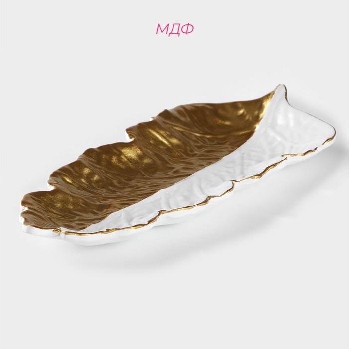 Блюдо для фруктов Доляна «Золотой лист», 38×15,5 см, цвет золотой с белым
