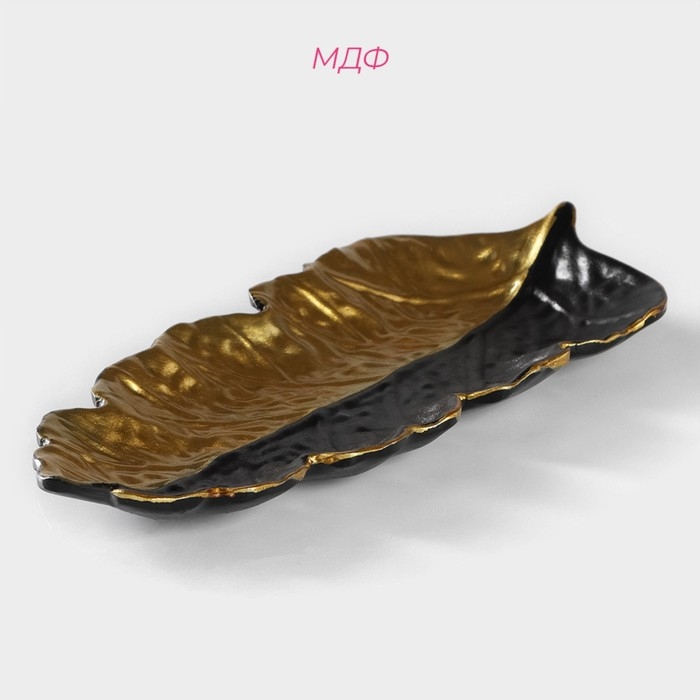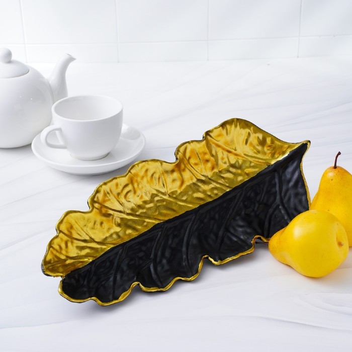 Блюдо для фруктов Доляна «Золотой лист», 38,5×15,5 см, цвет золотой с чёрным