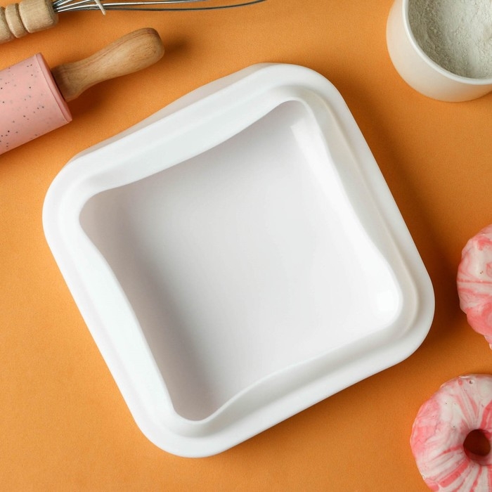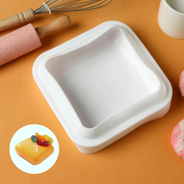 Форма для муссовых десертов и выпечки Доляна «Рябь», силикон, 18×18 см, внутренний размер 16×6,5 см, цвет белый