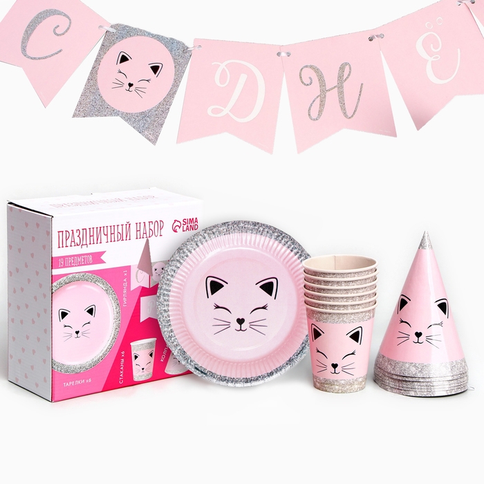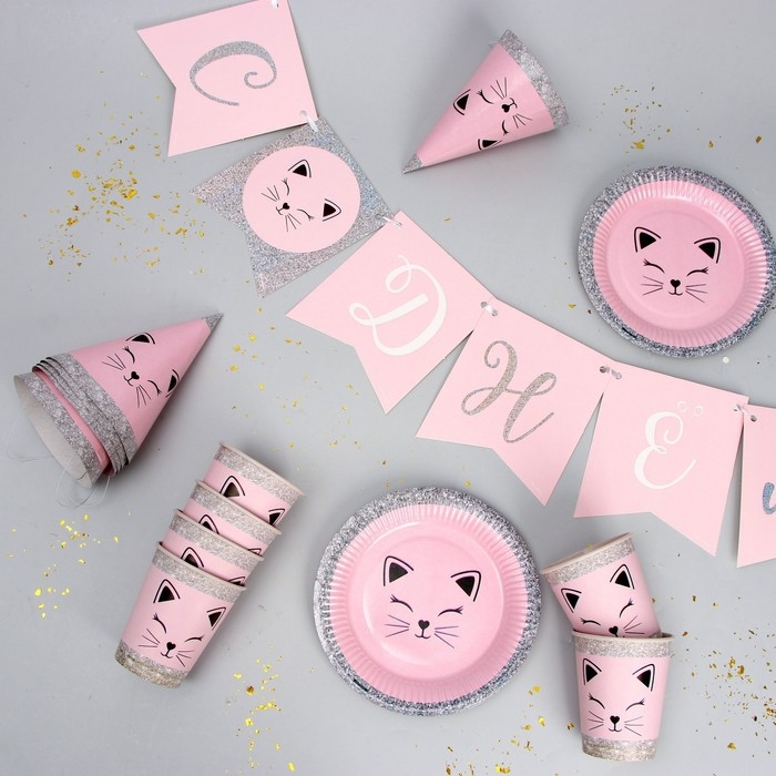 Набор бумажной посуды одноразовый Кошечка»