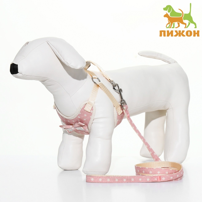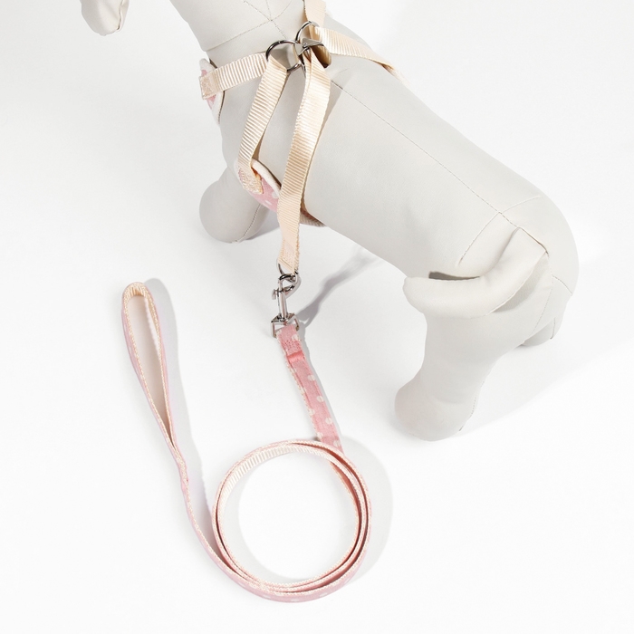 Комплект с мягкой шлейкой "Горох", размер М, поводок 120 х 1,5 см, ОГ 34-66 см, розовый