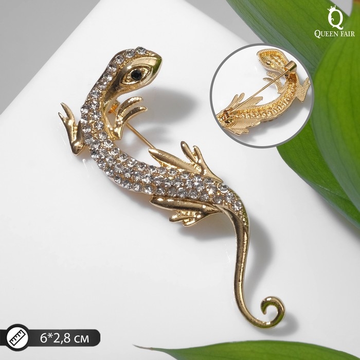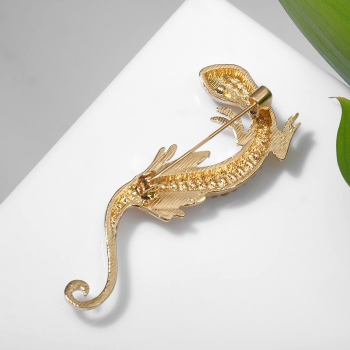 Брошь «Ящерица» узкая, цвет белый в золоте