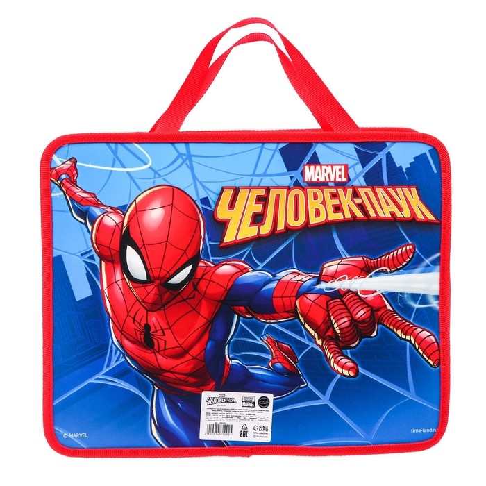 Папка пластиковая с ручками А4, на молнии, 75х330х260 мм, Человек-паук