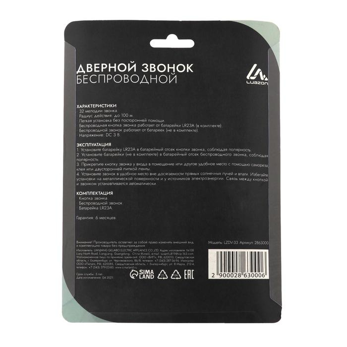 Звонок Luazon LZDV-33, беспроводной, 3хAA (не в комплекте), LR23A, бело-золотистый
