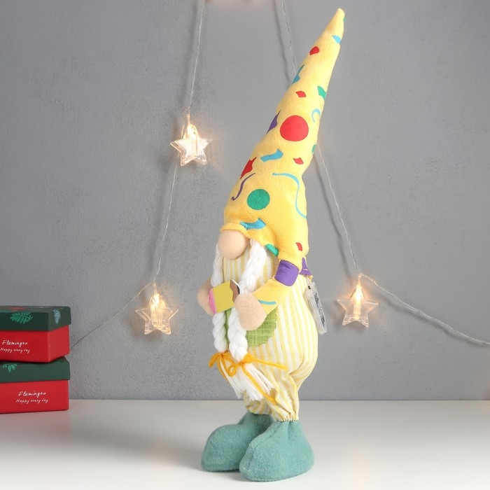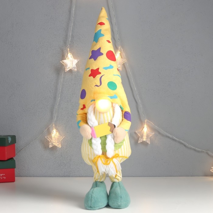 Кукла интерьерная свет "Бабусечка в ярком наряде, с карандашом" 52х13х12 см