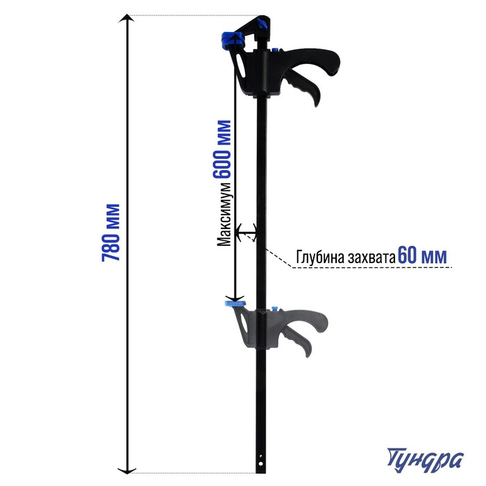 Струбцина быстрозажимная ТУНДРА, F-образная, 600 х 60 х 780 мм
