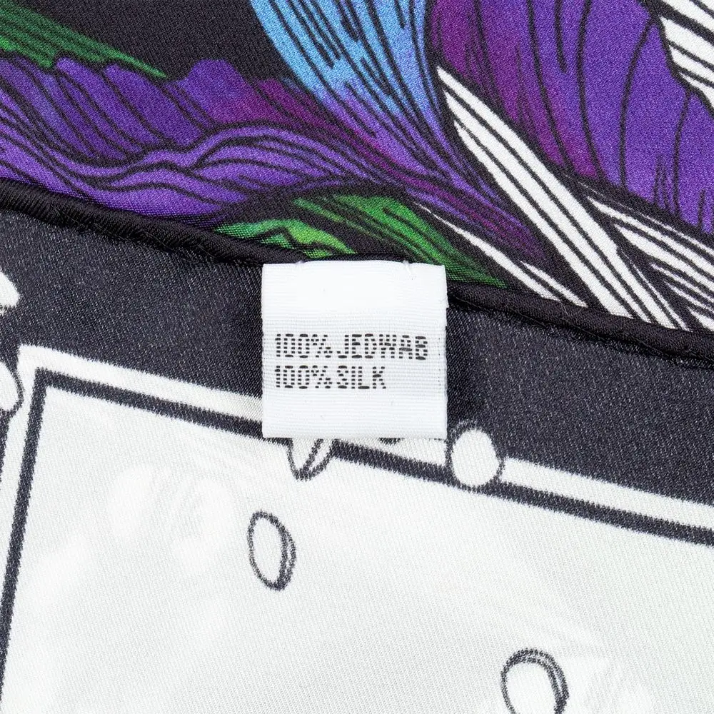 Шелковый платок с цветочным принтом открывает простор фантазии — его можно использовать как шарф, головной убор или декоративный элемент для верхней одежды и аксессуаров.