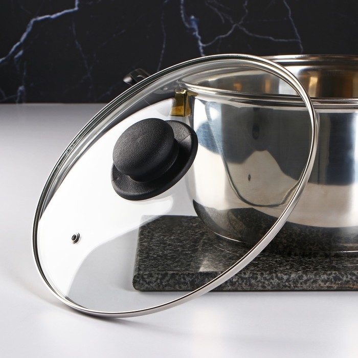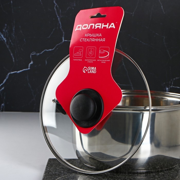 Крышка стеклянная для сковороды и кастрюли «Доляна», d=24 см, нержавеющий обод, пластиковая ручка